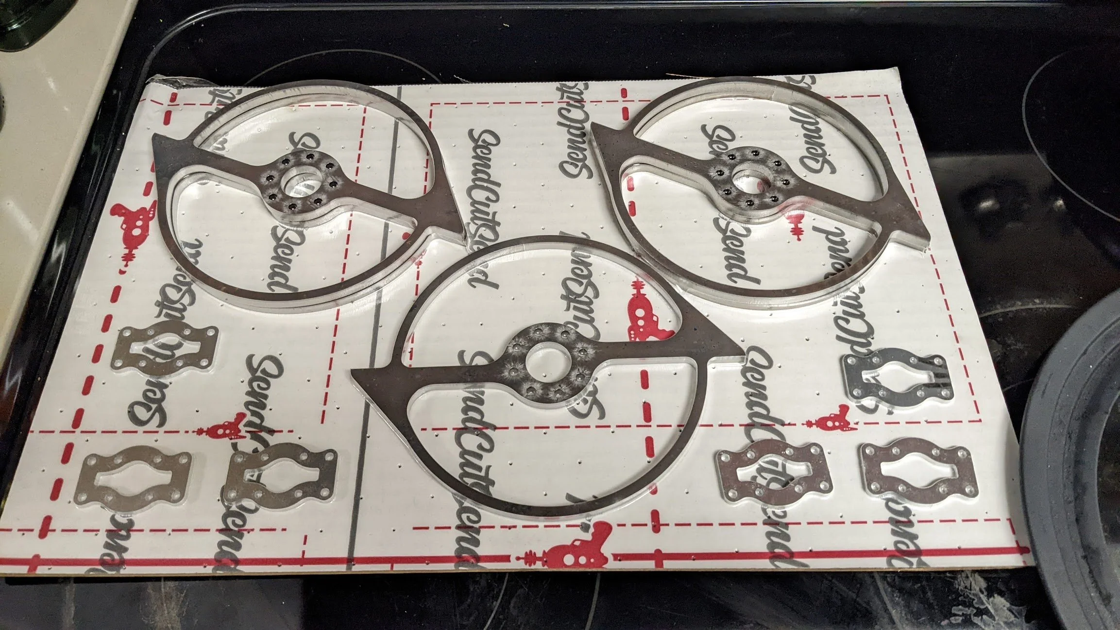 Abrasion Resistant Steel [AR500, etc]: AR or Abrasion Resistant steels are wear-resistant plates. These steels are not very consistent but generally, the surface hardness is measured as the stated number on the Brinnel hardness scale (AR500 being 500 Brinnel). These plates can be through hardened for thinner sheets but thicker may only be hardened on the top and bottom surfaces, with the inside being fairly soft. Still, AR500 is the material of choice for almost all flat, thin weapons in bots 30lbs down to 150 grams due to its low cost and design freedom from laser cutting services like Send Cut Send.