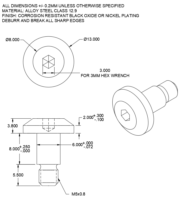 - Drive: 3mm Hex (Same as M5 flat-head and button-head screws)