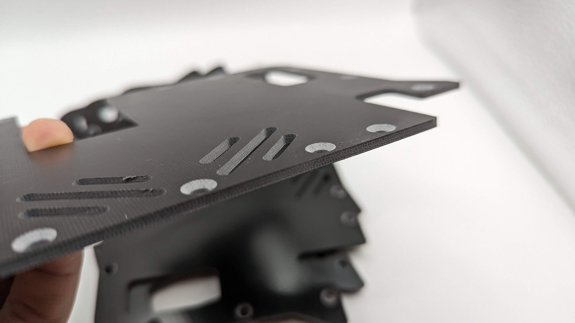 G10 Lid arrived safely with no cracks in material from shipping and handling. Counter sunk holes were well done. No edge fraying or delamination was noted. After taking some direct hits the G10 material began delaminating and the wings near the back of the lid eventually broke off. One or two of the screw holes on the sides broke through as the cross-section is thin but nothing a washer couldn't fix. The damage to the lid was expected due to mechanical properties of material but was and is still functional. I have already ordered a replacement.