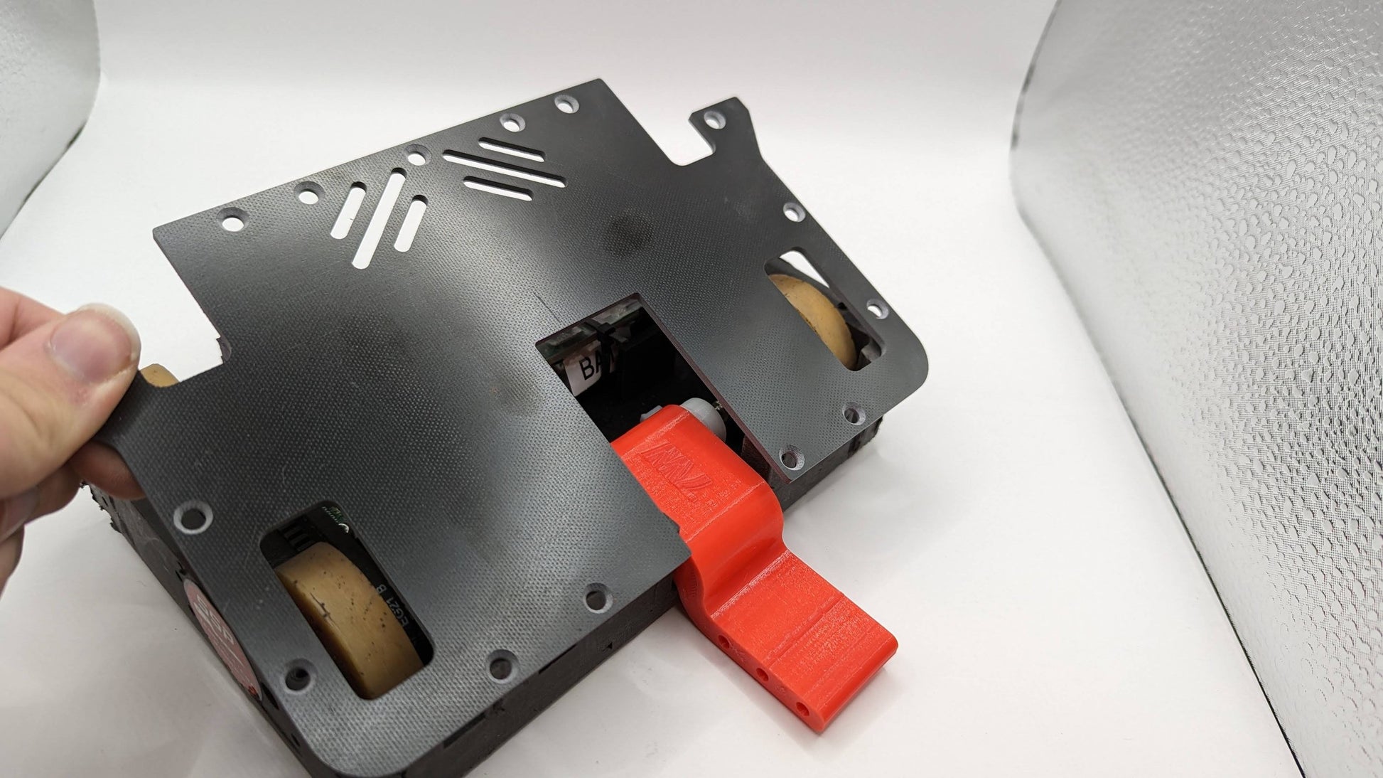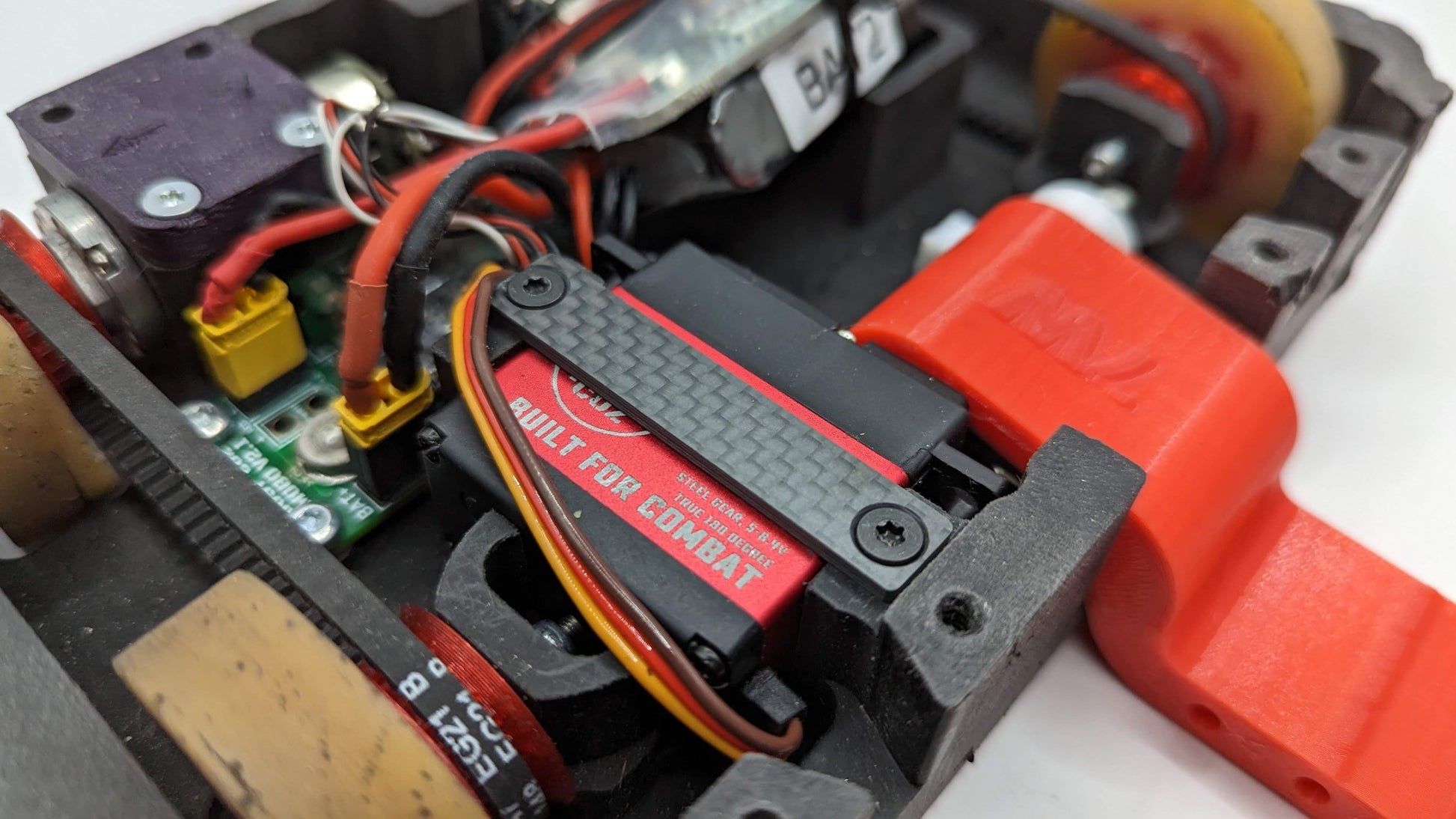 The UHMW billet chassis fit all electrical and mechanical components nice and snug even with some different parts than what the S.S.P. kit was designed with. After taking direct side and rear hits from egg beater and horizontal bar spinners the chassis is still in operational condition. Overall build and manufacturing quality of the lid and chassis are as expected. One thing to note is the lid and chassis mounting holes were a little misaligned but once all fasteners were in position and tightened there were no issues.