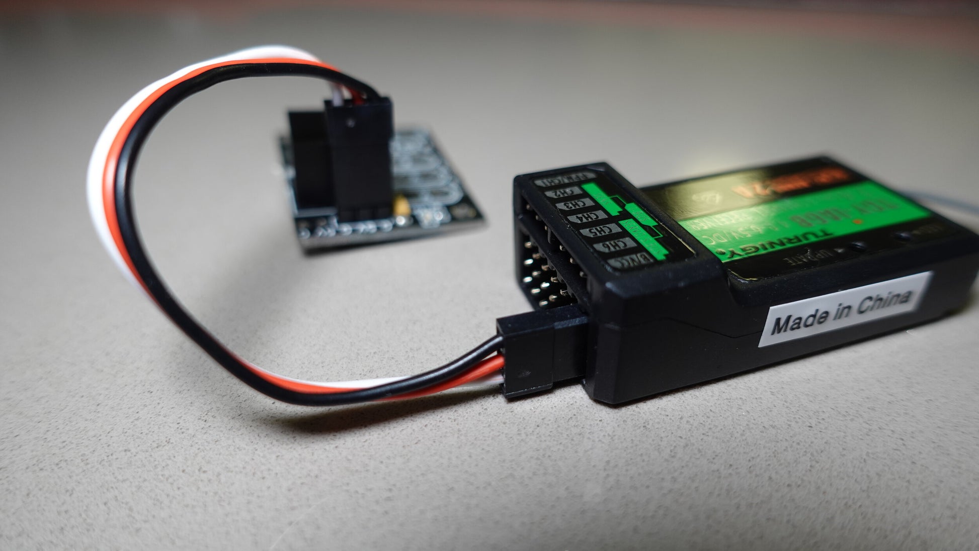 These will plug directly into the pins on any standard RC receiver and allow connections for Signal (white) 5V (red) and GROUND (G, GND) wires. Connect this to one of our AIO PD Boards to power a receiver off any power source from 6.5V up to 32V. If your receiver has a port/channel labeled “BAT”, this would be the ideal spot for it, but it will work on any channel as the red and black wires are all connected inside a receiver.